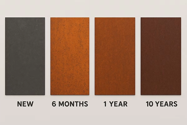 Protective rust patina over time
