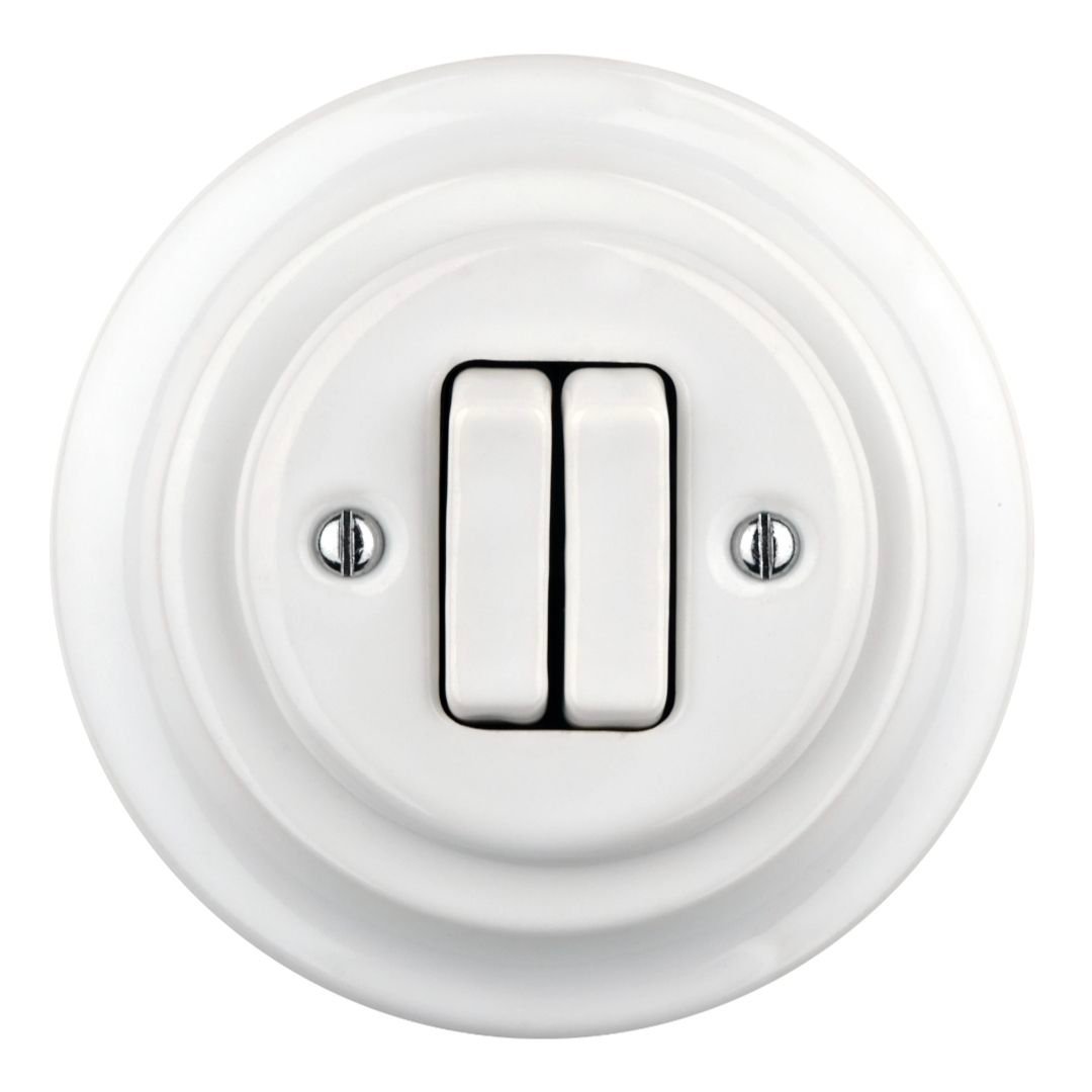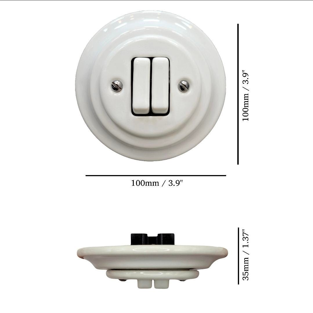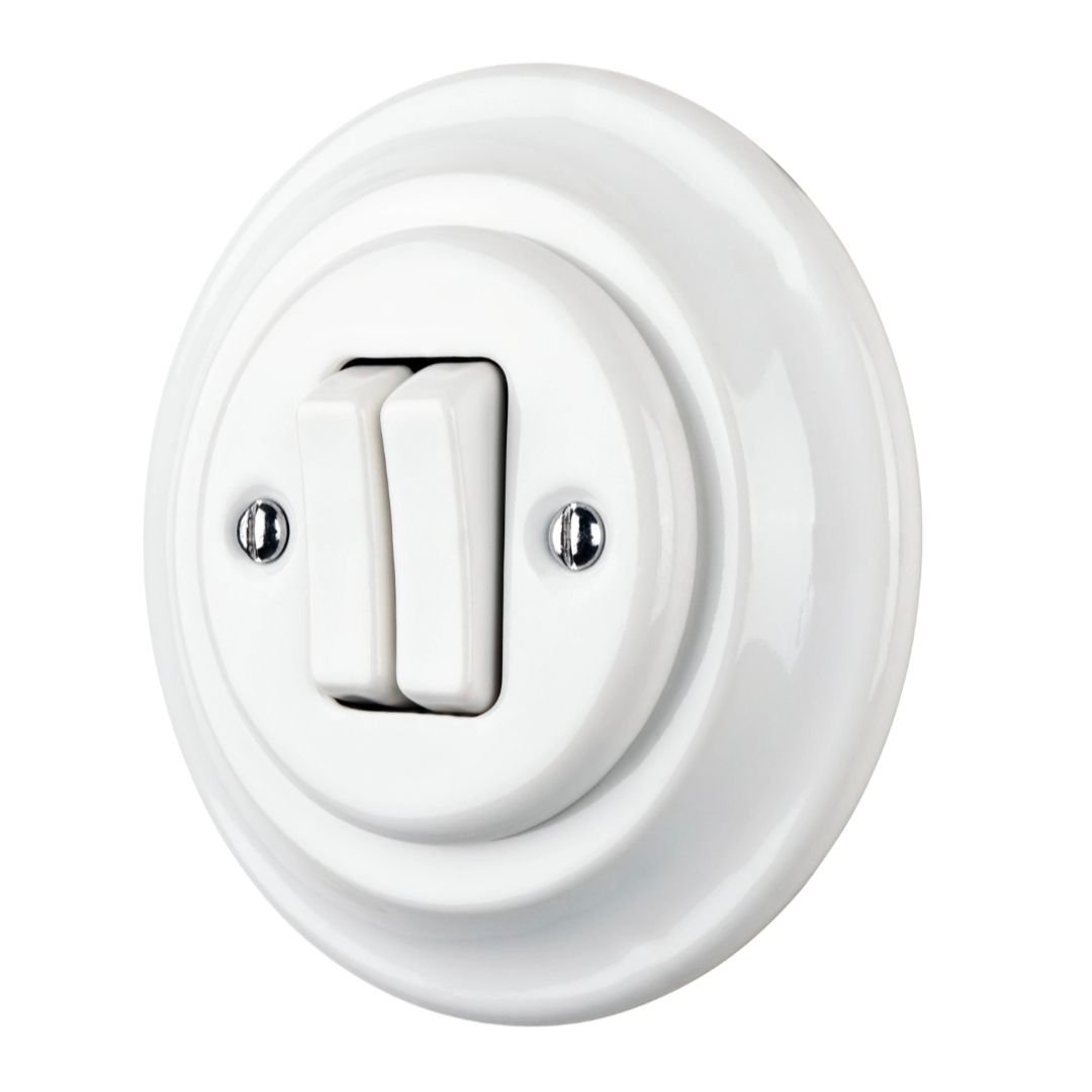 This porcelain light switch in a retro style combines a minimalist and elegant design that fits perfectly in all types of interiors—from rustic settings to industrial homes. Made from high-quality materials, it is not only functional but also serves as a decorative detail for your home or other spaces.
